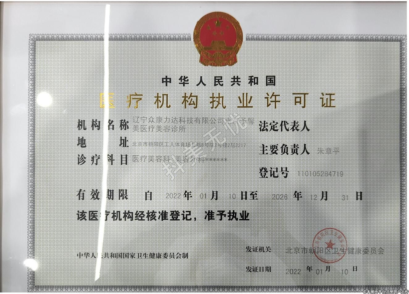 機構名稱:遼寧眾康力達科技有限公司北京予馨美醫(yī)療美容診所