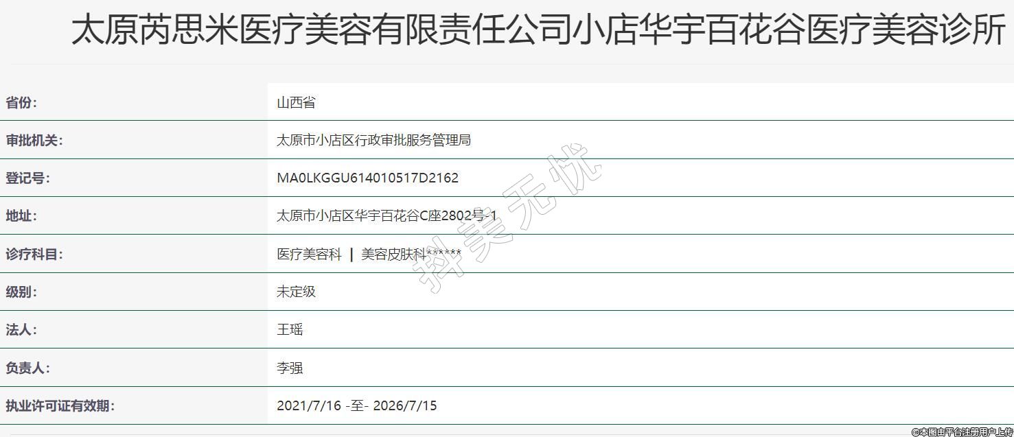 太原芮思米醫(yī)療美容有限責(zé)任公司小店華宇百花谷醫(yī)療美容診所