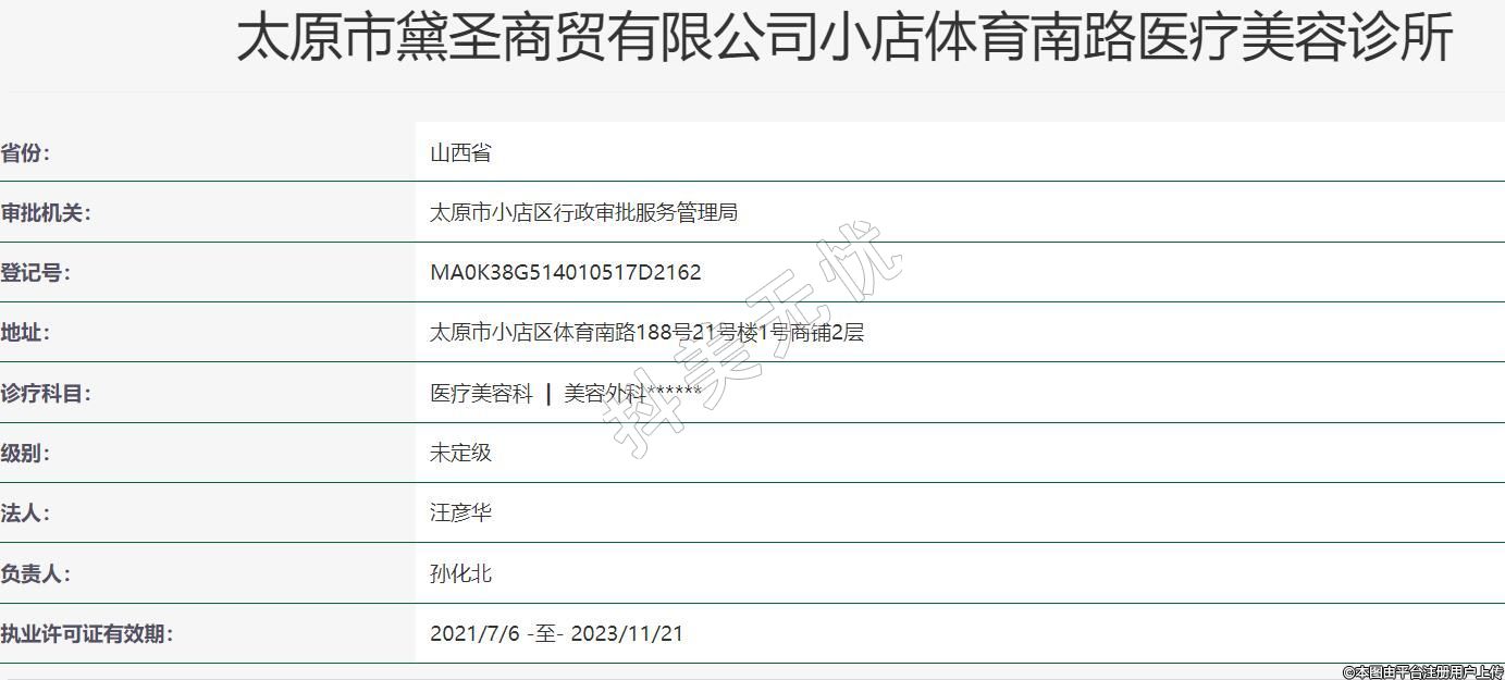太原市黛圣商貿(mào)有限公司小店體育南路醫(yī)療美容診所