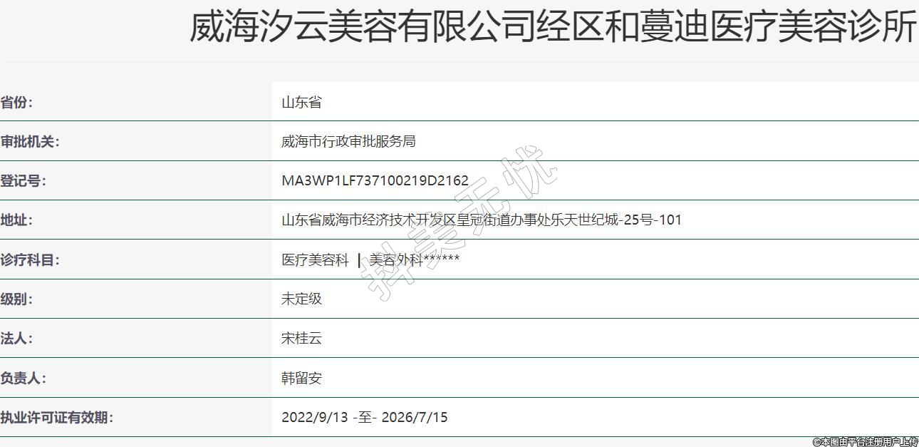 威海汐云美容有限公司經(jīng)區(qū)和蔓迪醫(yī)療美容診所