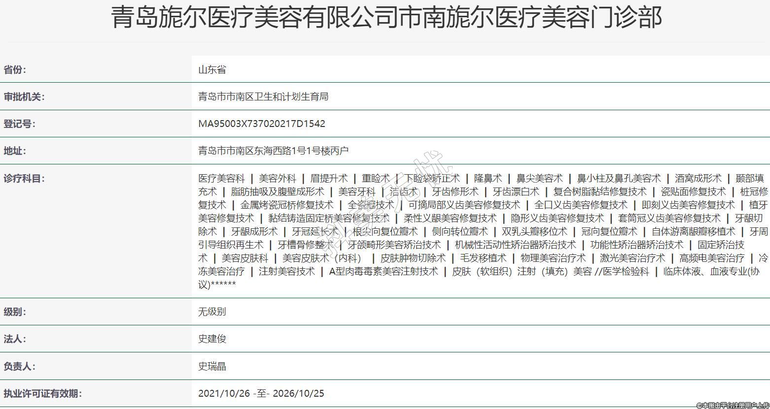 青島旎爾醫(yī)療美容有限公司市南旎爾醫(yī)療美容門診部