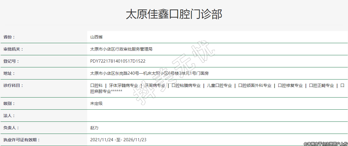 執(zhí)業(yè)許可證有效期:2021/11/24 -至- 2026/11/23