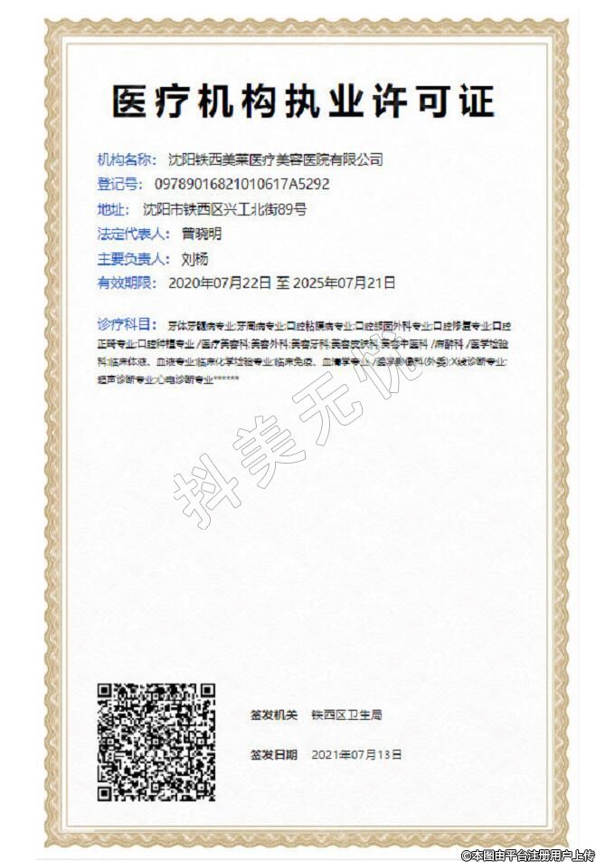 機構名稱:沈陽鐵西美萊醫(yī)療美容醫(yī)院有限公司