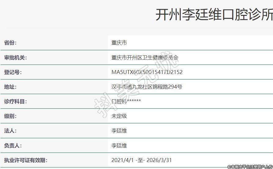 重慶李廷維口腔,地處于重慶市開州區(qū)漢豐街道九龍社區(qū)錦程路294號(hào),創(chuàng)立于2017年,是重慶市開州區(qū)衛(wèi)健部門審批成立的口腔診所,由三甲醫(yī)院口腔科主任創(chuàng)辦,三甲醫(yī)院口腔科主治醫(yī)師長期坐診,診所使用面積200余平方,擁有相先進(jìn)的醫(yī)療設(shè)備,牙科綜合椅六臺(tái),口腔CT1臺(tái)。開展口腔種植,口腔正畸,口腔修復(fù),口內(nèi)口外等綜合項(xiàng)目。