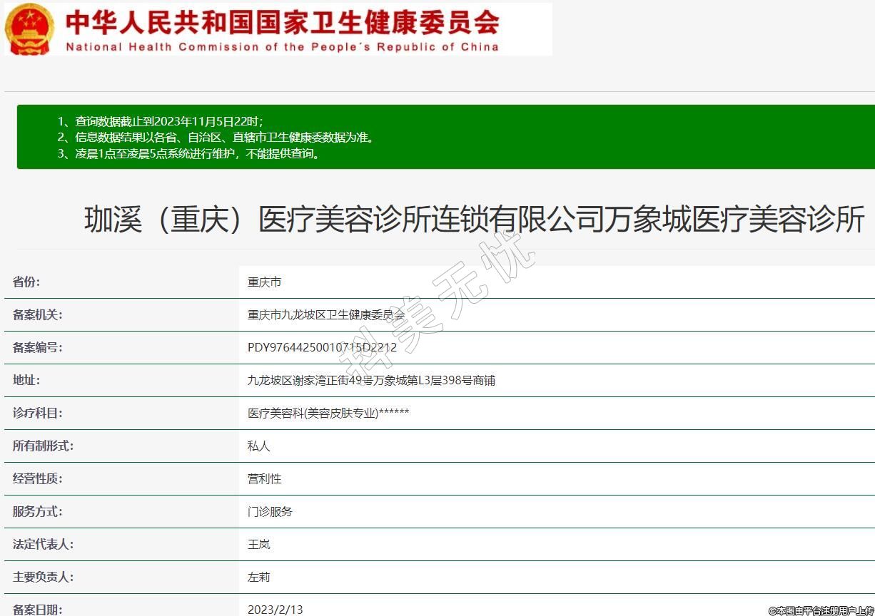 珈溪(重慶)醫(yī)療美容診所連鎖有限公司萬象城醫(yī)療美容診所