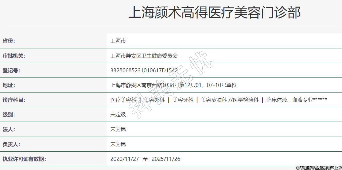 上海顏術(shù)高得醫(yī)療美容門診部