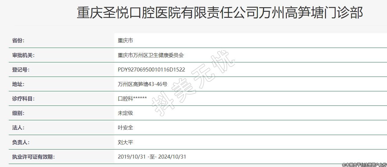 重慶圣悅口腔醫(yī)院有限責(zé)任公司萬(wàn)州高筍塘門診部