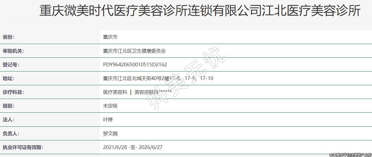 重慶微美時(shí)代醫(yī)療美容診所連鎖有限公司江北醫(yī)療美容診所