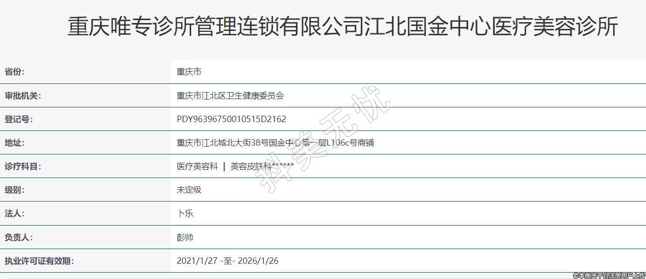 重慶唯專診所管理連鎖有限公司江北國金中心醫(yī)療美容診所