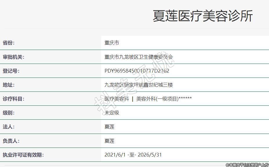 重慶夏蓮醫(yī)療美容,統(tǒng)一社會信用代碼 :92500107MA5UQH1WX5,地處于重慶市九龍坡區(qū)楊家坪正街26號斌鑫世紀(jì)城3樓,創(chuàng)立于2017年。致力于專業(yè)醫(yī)美人才的培養(yǎng),打造一流的技術(shù)團(tuán)隊和人性化的服務(wù)體系。讓來自不同城市的每一位客戶,都能更便捷體驗到我們優(yōu)質(zhì)貼心的醫(yī)療項目,享受咨詢、設(shè)計、售后的專人專屬服務(wù)。