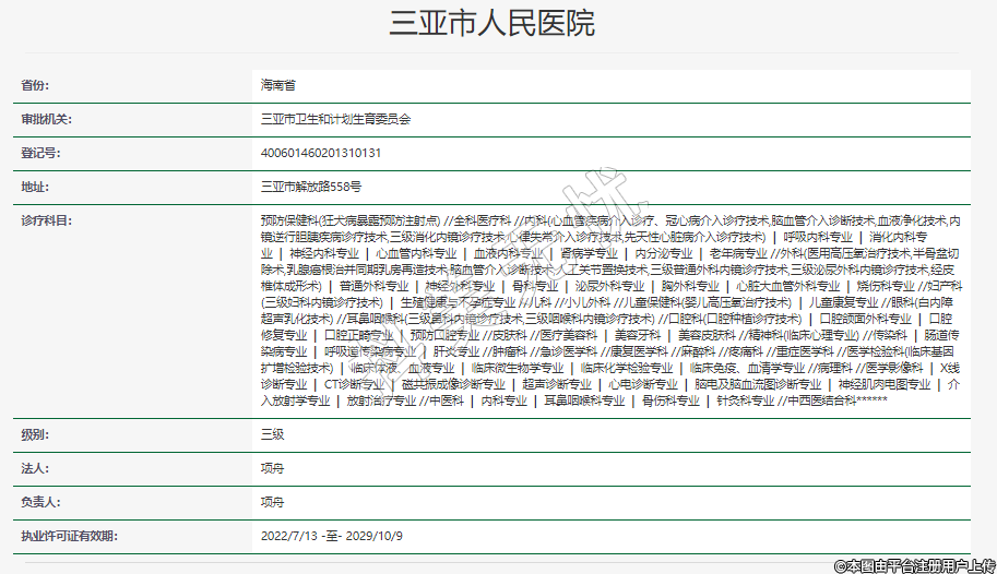 審批機(jī)關(guān):三亞市衛(wèi)生和計(jì)劃生育委員會(huì)