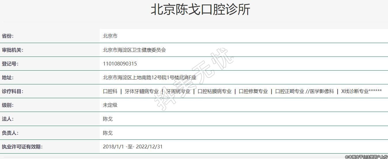 執(zhí)業(yè)許可證有效期:2018/1/1 -至- 2022/12/31