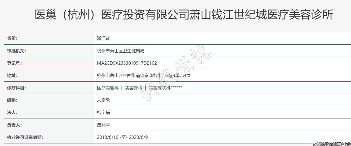 醫(yī)巢(杭州)醫(yī)療投資有限公司蕭山錢江世紀(jì)城醫(yī)療美容診所