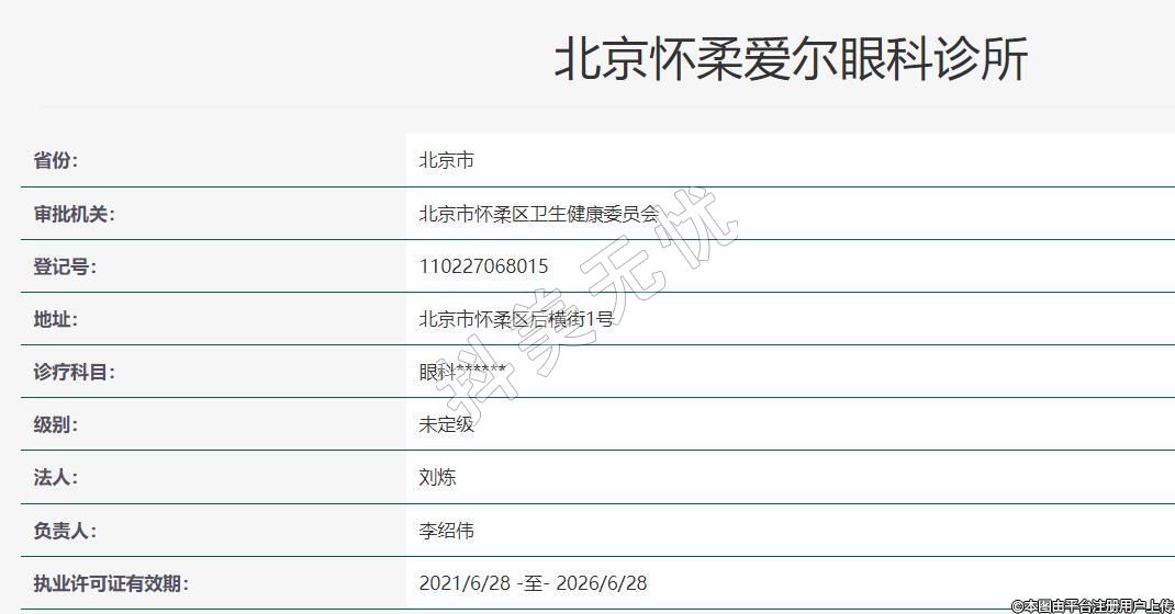 北京懷柔愛爾眼科2021-05-14成立,地址:北京市懷柔區(qū)后橫街1號,診療科目:眼科******