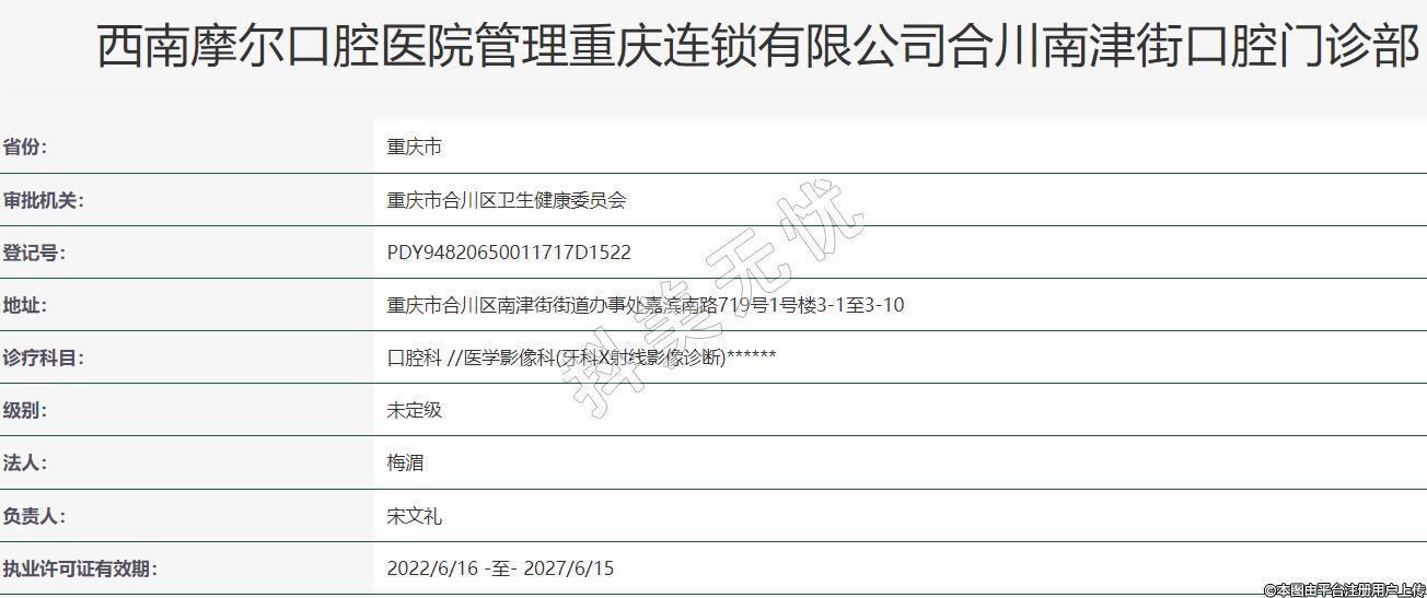 西南摩爾口腔醫(yī)院管理重慶連鎖有限公司合川南津街口腔門診部