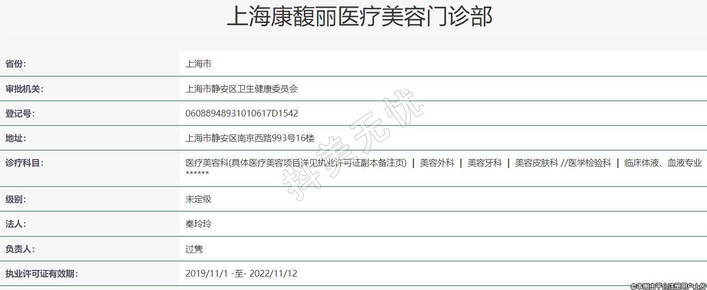 診療科目:醫(yī)療美容科(具體醫(yī)療美容項目詳見執(zhí)業(yè)許可證副本備注頁) | 美容外科 | 美容牙科 | 美容皮膚科 //醫(yī)學(xué)檢驗科 | 臨床體液、血液專業(yè)******