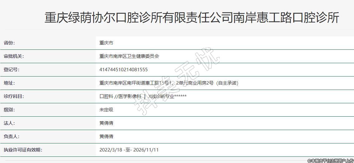 重慶綠蔭協(xié)爾口腔診所有限責任公司南岸惠工路口腔診所