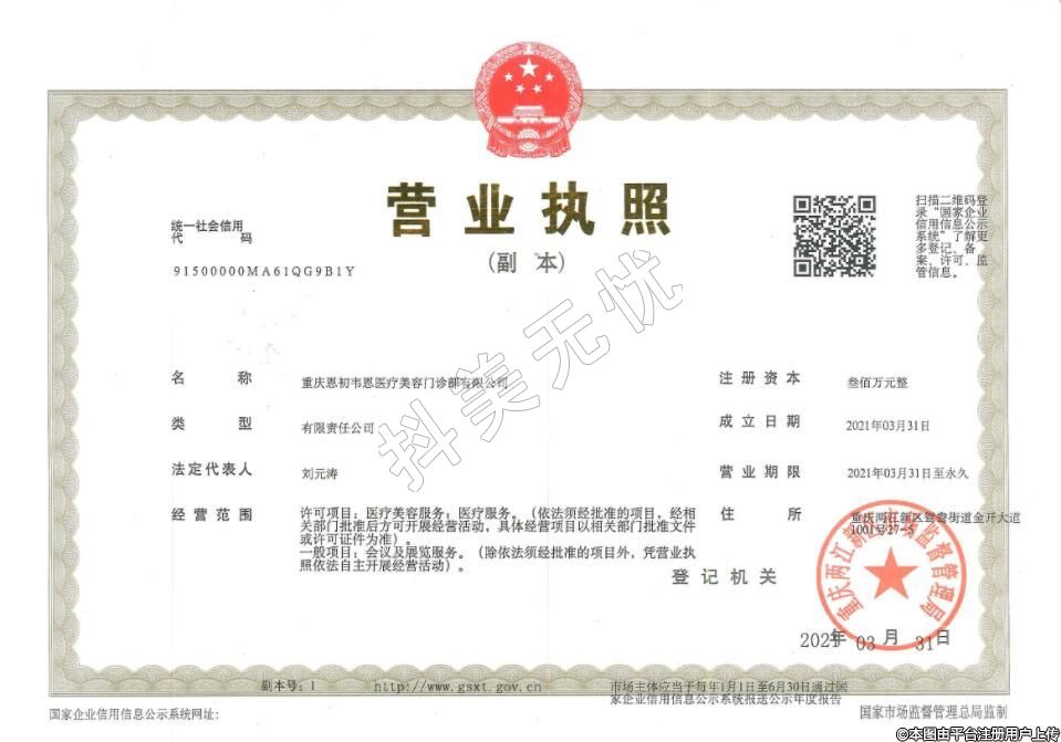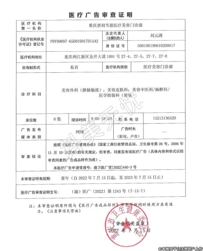 機(jī)構(gòu)名稱(chēng):重慶恩初韋恩醫(yī)療美容門(mén)診部