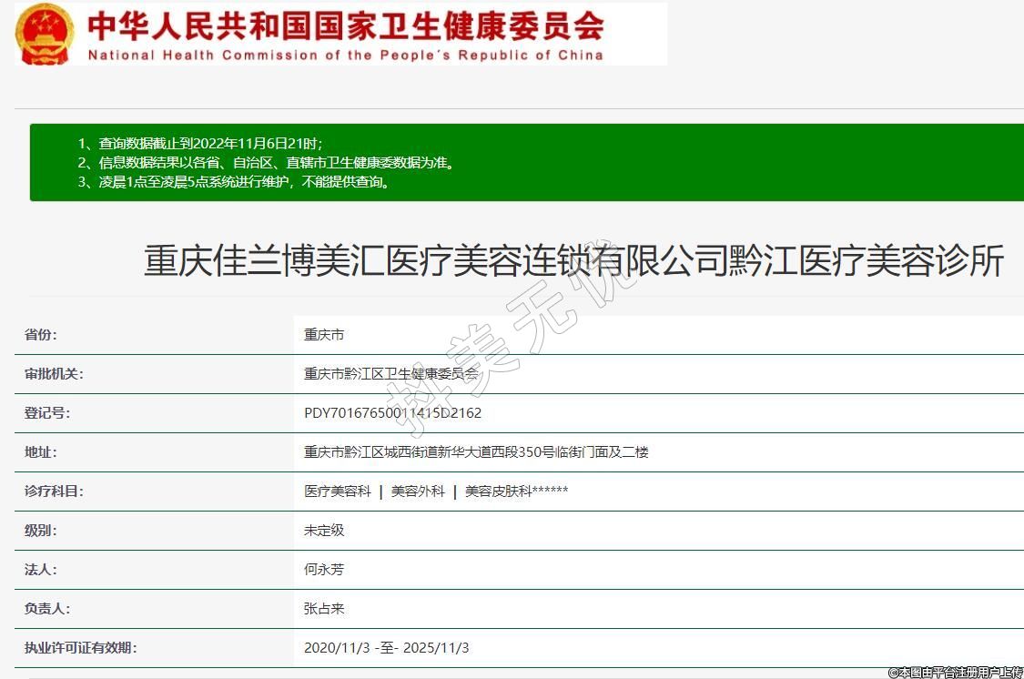 重慶佳蘭博美匯醫(yī)療美容連鎖有限公司黔江醫(yī)療美容診所