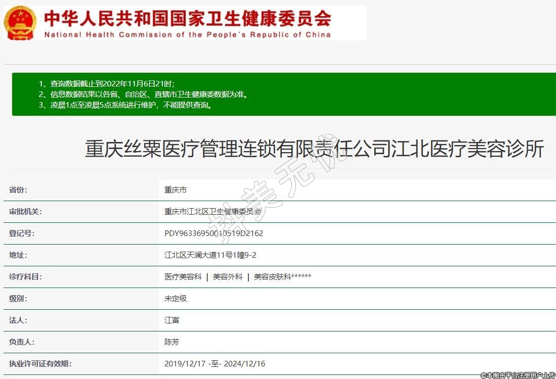 重慶絲粟醫(yī)療管理連鎖有限責(zé)任公司江北醫(yī)療美容診所
