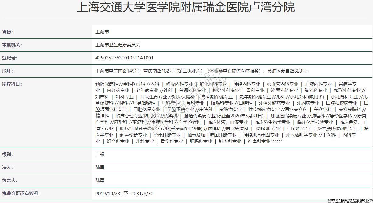 地址:上海市重慶南路149號(hào);重慶南路182號(hào)(第二執(zhí)業(yè)點(diǎn))(停業(yè)至重新提供醫(yī)療服務(wù))、黃浦區(qū)蒙自路823號(hào)