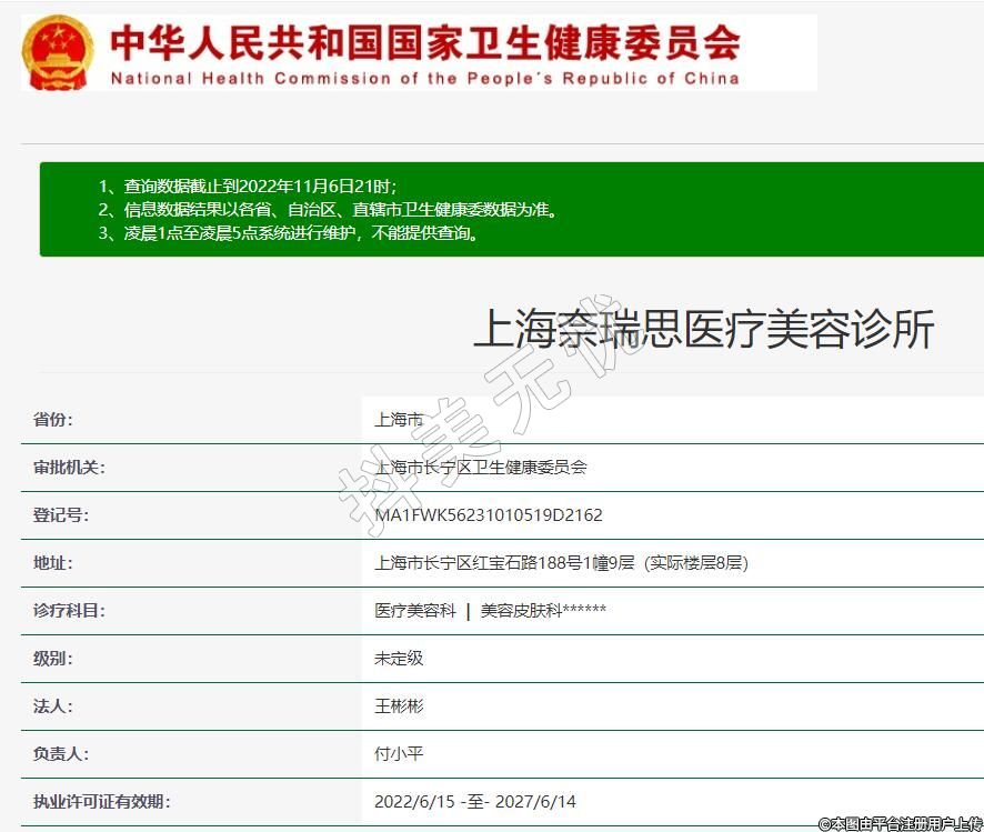 上海奈瑞思醫(yī)療美容2020-07-06成立,地址:上海市長寧區(qū)紅寶石路188號1幢9層(實際樓層8層),診療科目:醫(yī)療美容科 | 美容皮膚科******