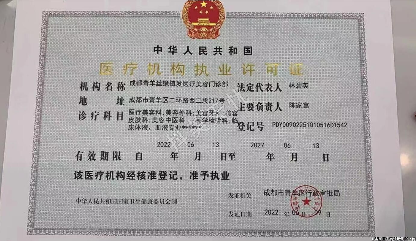 機構(gòu)名稱:成都青羊絲緣植發(fā)醫(yī)療美容門診部