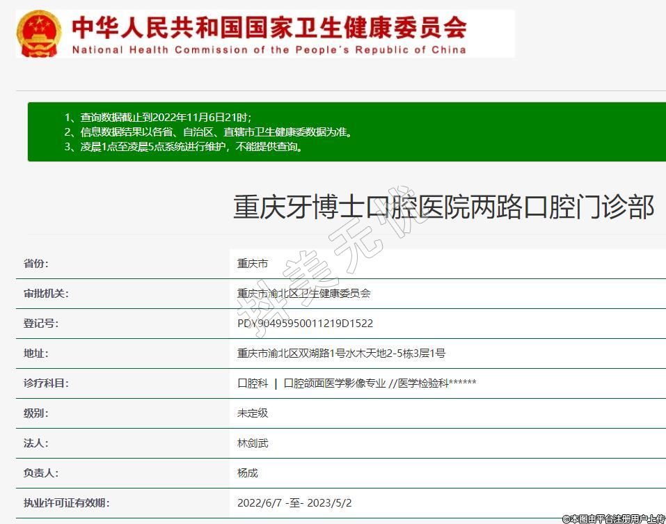 審批機關:重慶市渝北區(qū)衛(wèi)生健康委員會