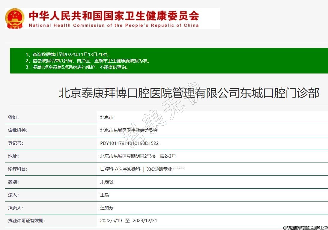 北京泰康拜博口腔醫(yī)院管理有限公司東城口腔門診部