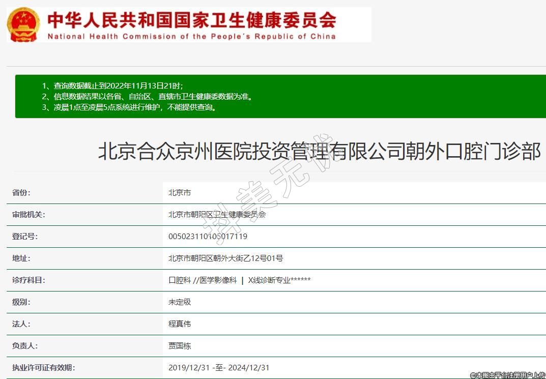 北京合眾京州醫(yī)院投資管理有限公司朝外口腔門診部