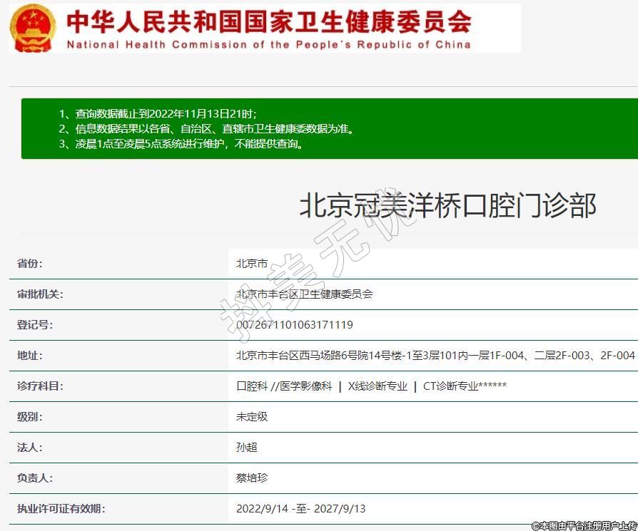 北京冠美洋橋口腔2021-06-22成立,地址:北京市豐臺區(qū)西馬場路6號院14號樓-1至3層101內(nèi)一層1F-004、二層2F-003、2F-004,診療科目:口腔科 //醫(yī)學(xué)影像科 | X線診斷專業(yè) | CT診斷專業(yè)******