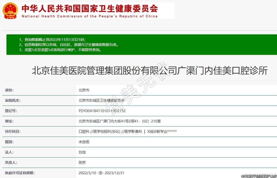 北京佳美醫(yī)院管理集團(tuán)股份有限公司廣渠門(mén)內(nèi)佳美口腔診所