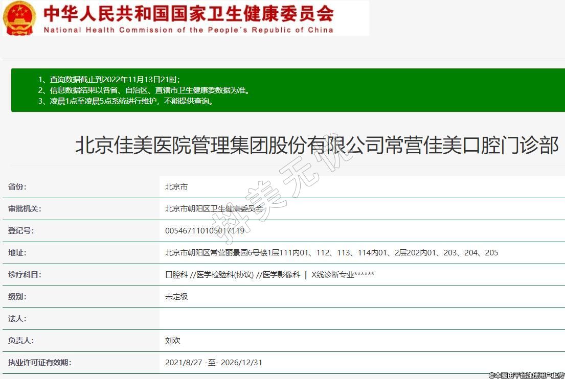 北京佳美醫(yī)院管理集團(tuán)股份有限公司常營(yíng)佳美口腔門(mén)診部