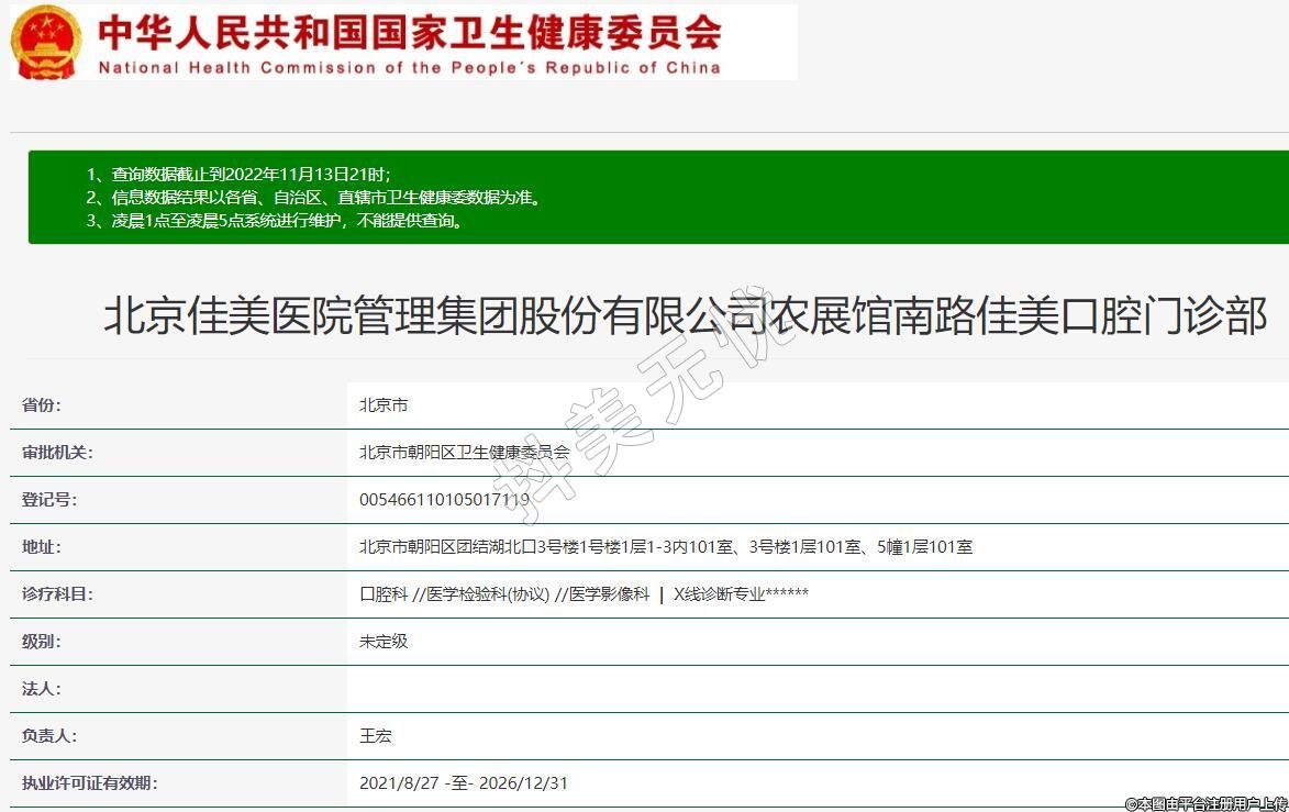 北京佳美醫(yī)院管理集團股份有限公司農展館南路佳美口腔門診部