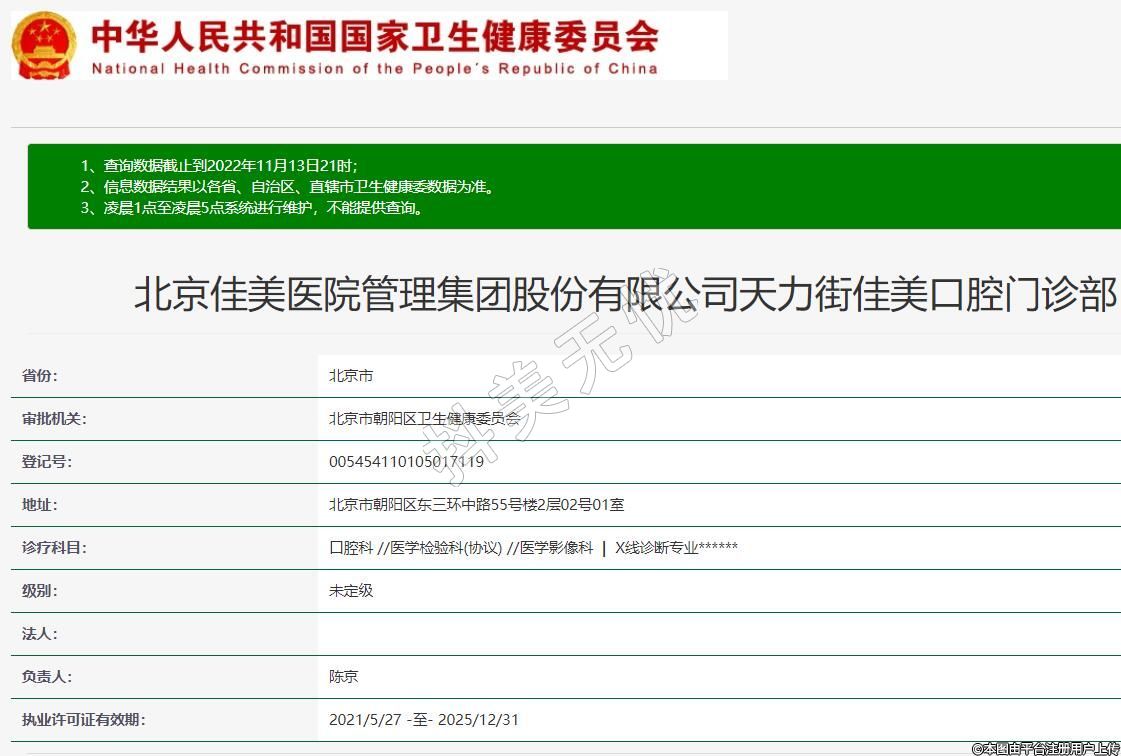 北京佳美醫(yī)院管理集團(tuán)股份有限公司天力街佳美口腔門診部
