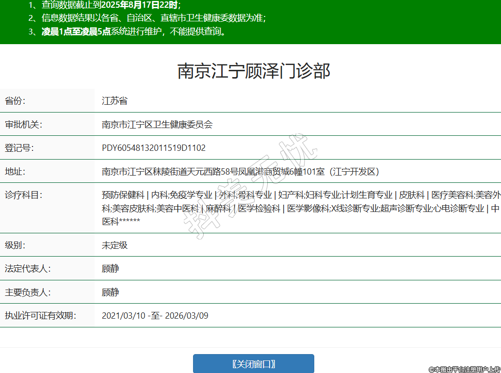 省份:江蘇省審批機(jī)關(guān):南京市江寧區(qū)衛(wèi)生健康委員會(huì)登記號(hào):PDY60548132011519D1102地址:南京市江寧區(qū)秣陵街道天元西路58號(hào)鳳凰港商貿(mào)城6幢101室(江寧開發(fā)區(qū))診療科目:預(yù)防保健科 | 內(nèi)科;免疫學(xué)專業(yè) | 外科;骨科專業(yè) | 婦產(chǎn)科;婦科專業(yè);計(jì)劃生育專業(yè) | 皮膚科 | 醫(yī)療美容科;美容外科;美容皮膚科;美容中醫(yī)科 | 麻醉科 | 醫(yī)學(xué)檢驗(yàn)科 | 醫(yī)學(xué)影像科;X線診斷專業(yè);超聲診斷專業(yè);心電診斷專業(yè) | 中醫(yī)科******級(jí)別:未定級(jí)法定代表人:顧靜主要負(fù)責(zé)人:顧靜執(zhí)業(yè)許可證有效期:2021/03/10 -至- 2026/03/09 -