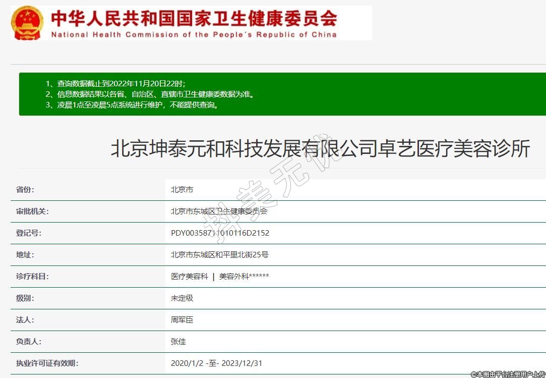 北京坤泰元和科技發(fā)展有限公司卓藝醫(yī)療美容診所