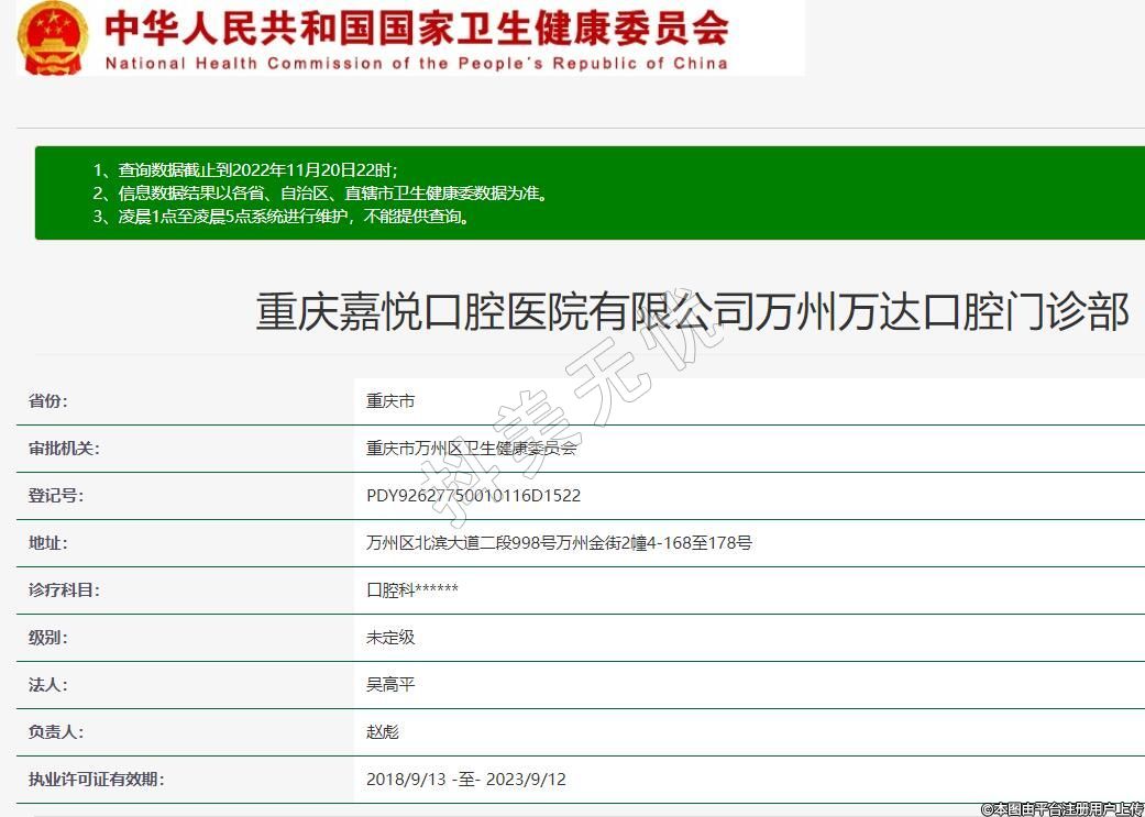 重慶嘉悅口腔醫(yī)院有限公司萬州萬達(dá)口腔門診部