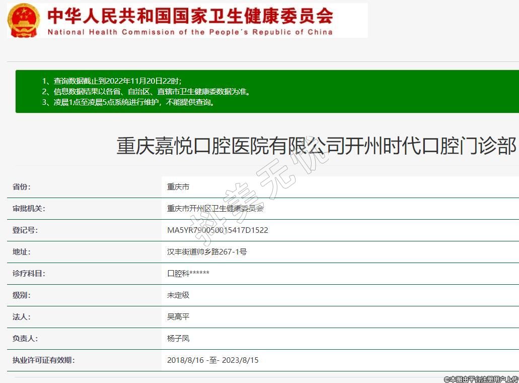 重慶嘉悅口腔醫(yī)院有限公司開州時代口腔門診部