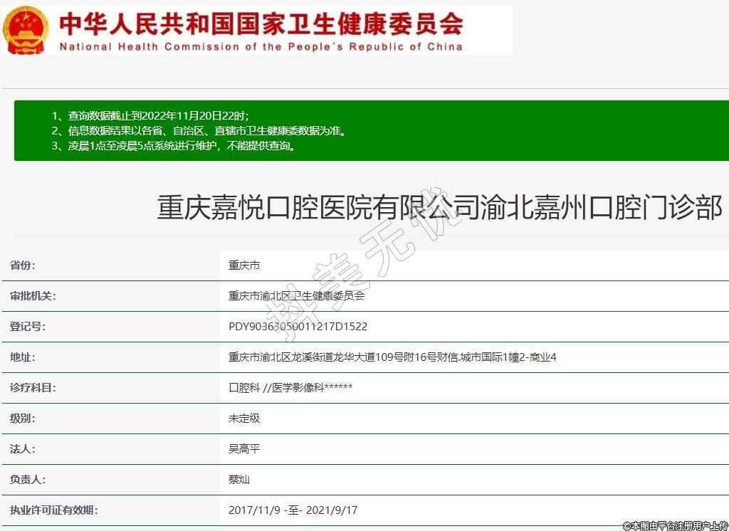 重慶嘉悅口腔醫(yī)院有限公司渝北嘉州口腔門(mén)診部