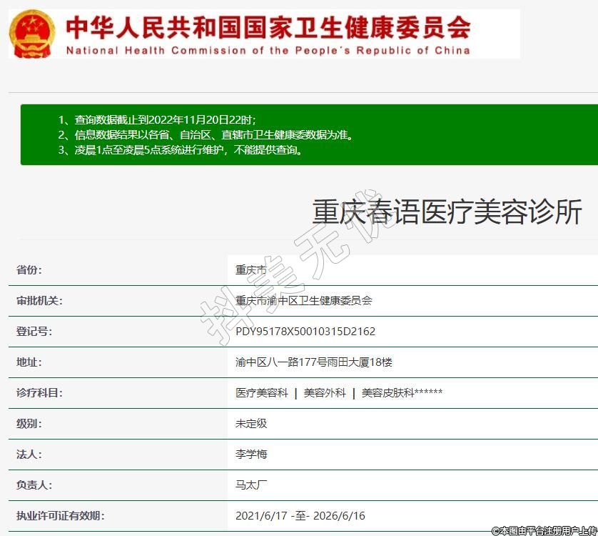 審批機關:重慶市渝中區(qū)衛(wèi)生健康委員會