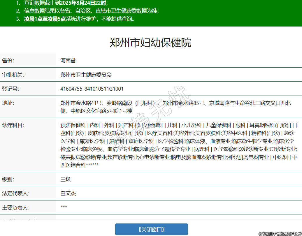 省份:河南省審批機(jī)關(guān):鄭州市衛(wèi)生健康委員會(huì)登記號(hào):41604755-841010511G1001地址:鄭州市金水路41號(hào)、秦嶺路南段(閆垌村)、鄭州市金水路85號(hào)、京城南路與生命谷北二路交叉口西北側(cè)、中原區(qū)文化宮路5號(hào)院1號(hào)樓診療科目:預(yù)防保健科 | 內(nèi)科 | 外科 | 婦產(chǎn)科 | 婦女保健科 | 兒科 | 小兒外科 | 兒童保健科 | 眼科 | 耳鼻咽喉科(門診) | 口腔科(門診) | 皮膚科;皮膚病專業(yè)(門診) | 醫(yī)療美容科;美容外科;美容皮膚科;美容中醫(yī)科 | 精神科(門診) | 急診醫(yī)學(xué)科 | 康復(fù)醫(yī)學(xué)科 | 麻醉科 | 重癥醫(yī)學(xué)科 | 醫(yī)學(xué)檢驗(yàn)科;臨床體液、血液專業(yè);臨床微生物學(xué)專業(yè);臨床化學(xué)檢驗(yàn)專業(yè);臨床免疫、血清學(xué)專業(yè);臨床細(xì)胞分子遺傳學(xué)專業(yè) | 病理科 | 醫(yī)學(xué)影像科;X線診斷專業(yè);CT診斷專業(yè);磁共振成像診斷專業(yè);超聲診斷專業(yè);心電診斷專業(yè);腦電及腦血流圖診斷專業(yè);神經(jīng)肌肉電圖專業(yè) | 中醫(yī)科 | 中西醫(yī)結(jié)合科******級(jí)別:三級(jí)法定代表人:白文杰主要負(fù)責(zé)人:***執(zhí)業(yè)許可證有效期:2025/07/22 -至- 2033/04/01 -