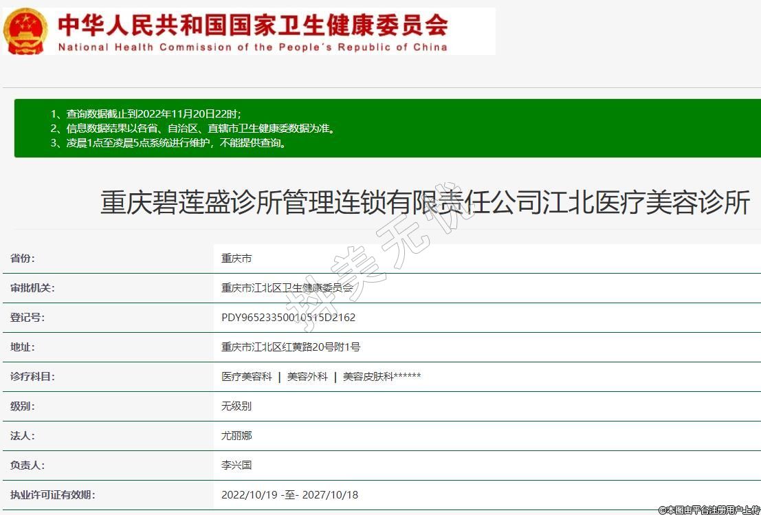 重慶碧蓮盛診所管理連鎖有限責(zé)任公司江北醫(yī)療美容診所