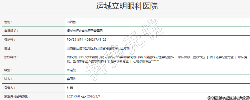 執(zhí)業(yè)許可證有效期:2021/3/8 -至- 2026/3/7
