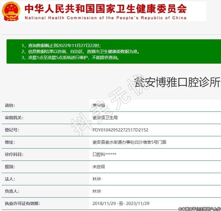 甕安博雅口腔2021-12-24成立,地址:甕安縣甕水街道辦事處白沙宿舍5號(hào)門(mén)面,診療科目:口腔科******