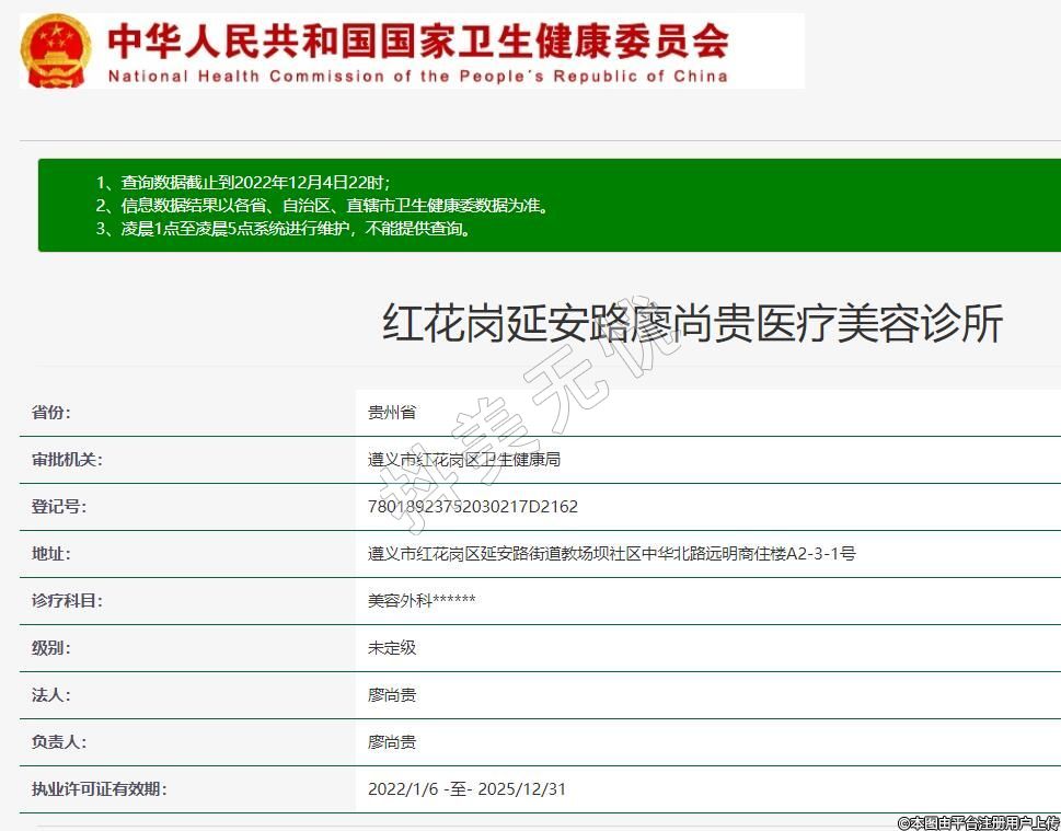 遵義廖尚貴醫(yī)療美容,診療科目:美容外科******
