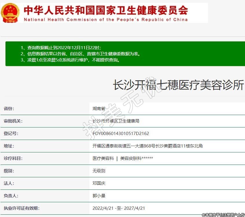 審批機關:長沙市開福區(qū)衛(wèi)生健康局