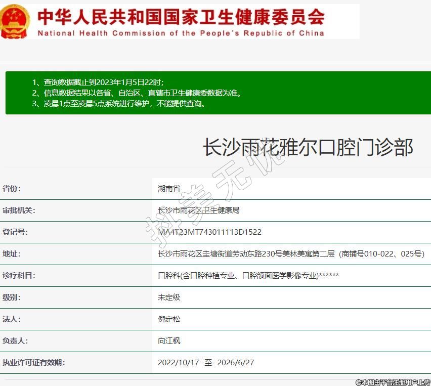 審批機關:長沙市雨花區(qū)衛(wèi)生健康局