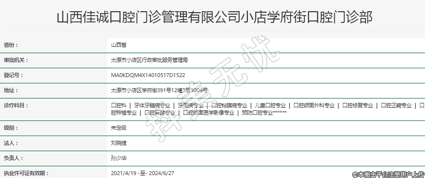 山西佳誠口腔門診管理有限公司小店學(xué)府街口腔門診部