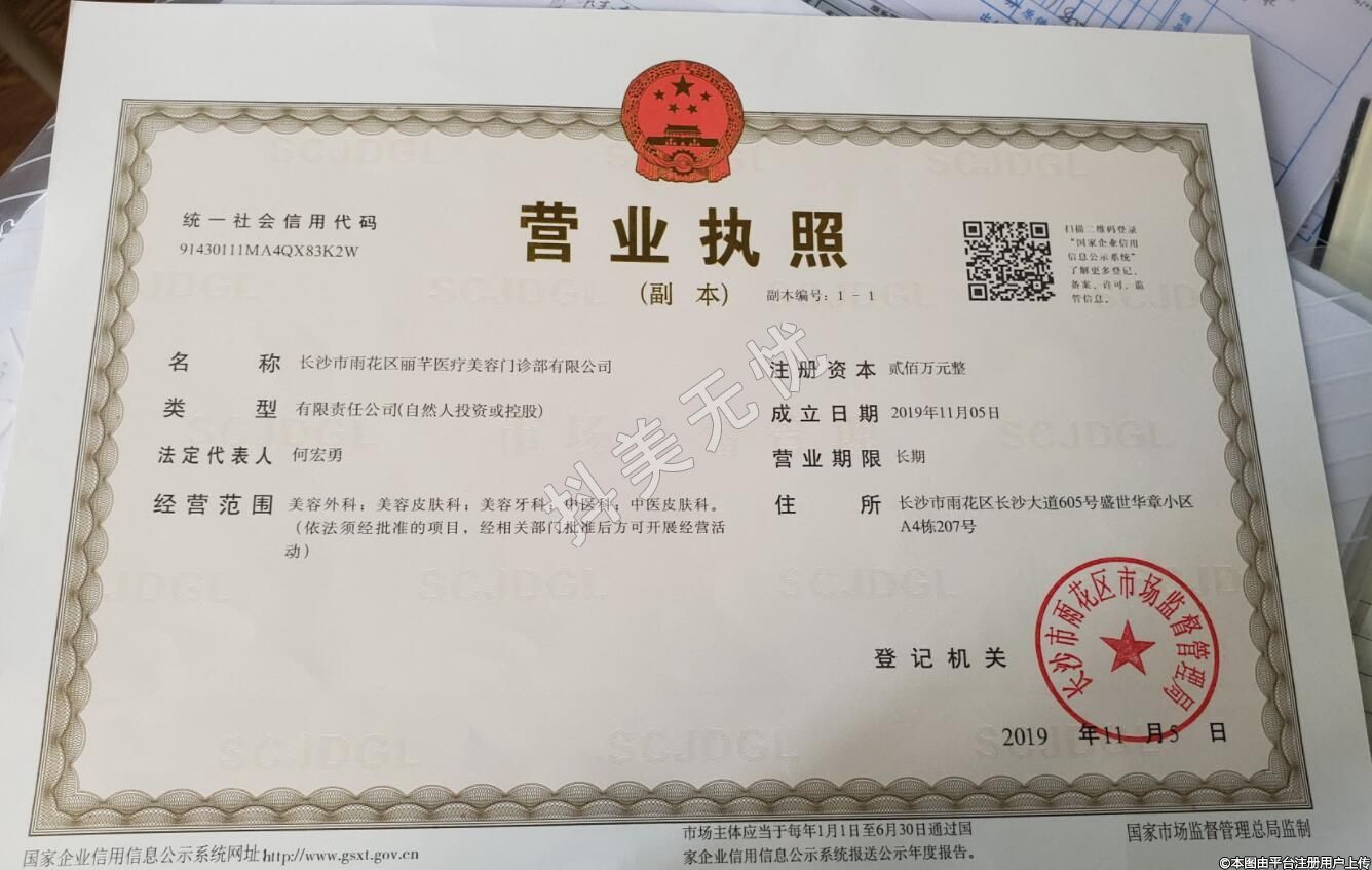 發(fā)證機關:長沙市雨花區(qū)衛(wèi)生健康局